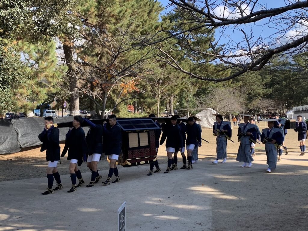 お渡り式(おわたりしき)は、12月17日(水)の正午に行われる春日若宮おん祭の大行列です。