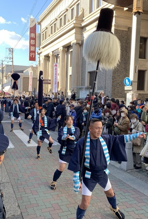南大門前では、古式ゆかしい声が響き、行列の緊張感が一段と高まります。