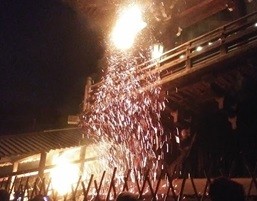 火の粉を浴びると無病息災のご利益(ごりやく)があるとされ、落ちた杉葉も縁起物として大切にされます。