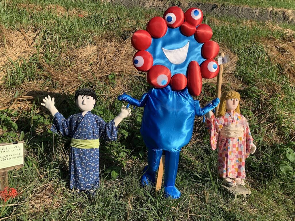 案山子ロードの雰囲気といくつかの案山子たちを紹介します。