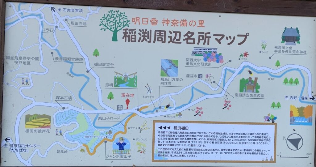 下の写真は「稲渕周辺名所マップ」の掲示板の写真です。