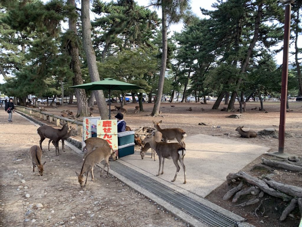 Nara Park is covered with beautiful green grass, but no one is mowing it. The deer are neatly grazing and keeping it trimmed.