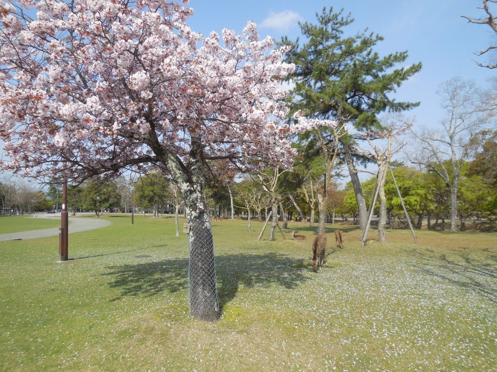 奈良公園で、最初に咲くのがこの桜です。