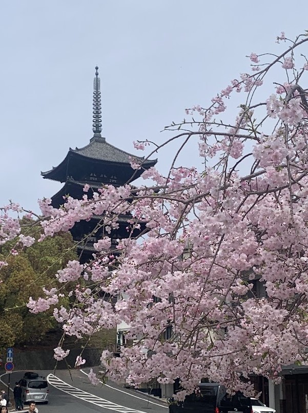 八重桜と興福寺五重塔