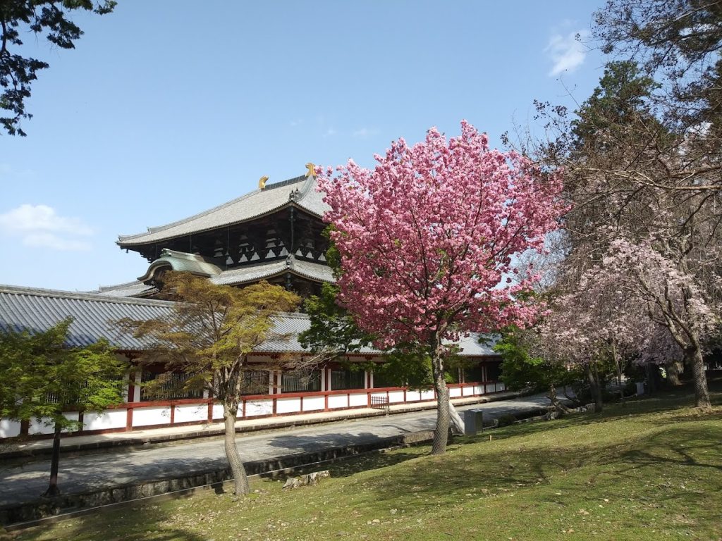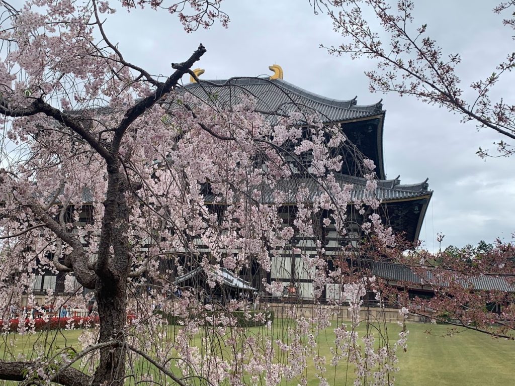 大仏殿と枝垂桜