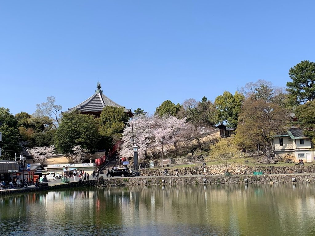猿沢池から興福寺南円堂をのぞむ
