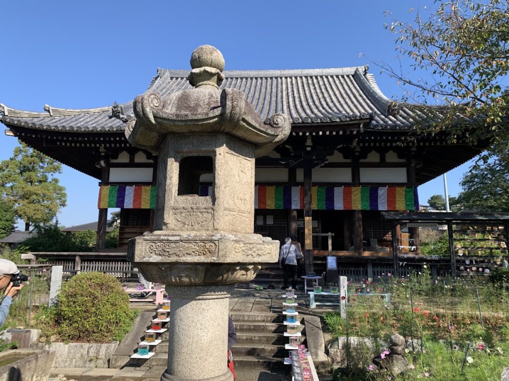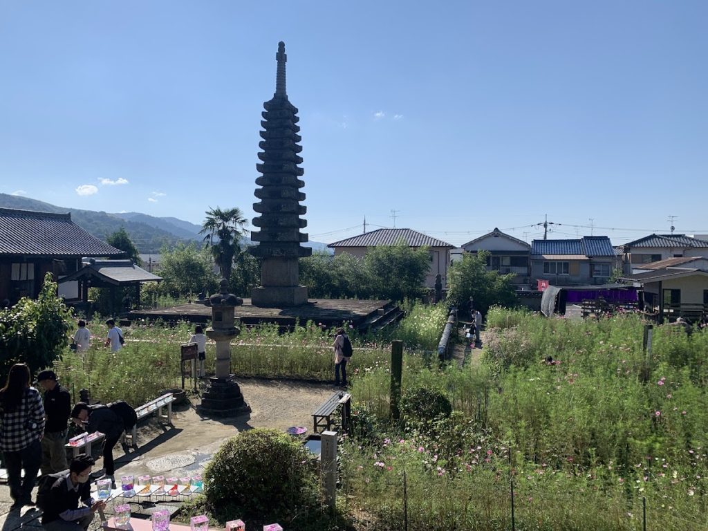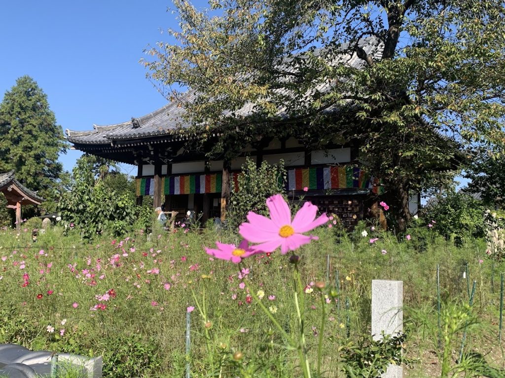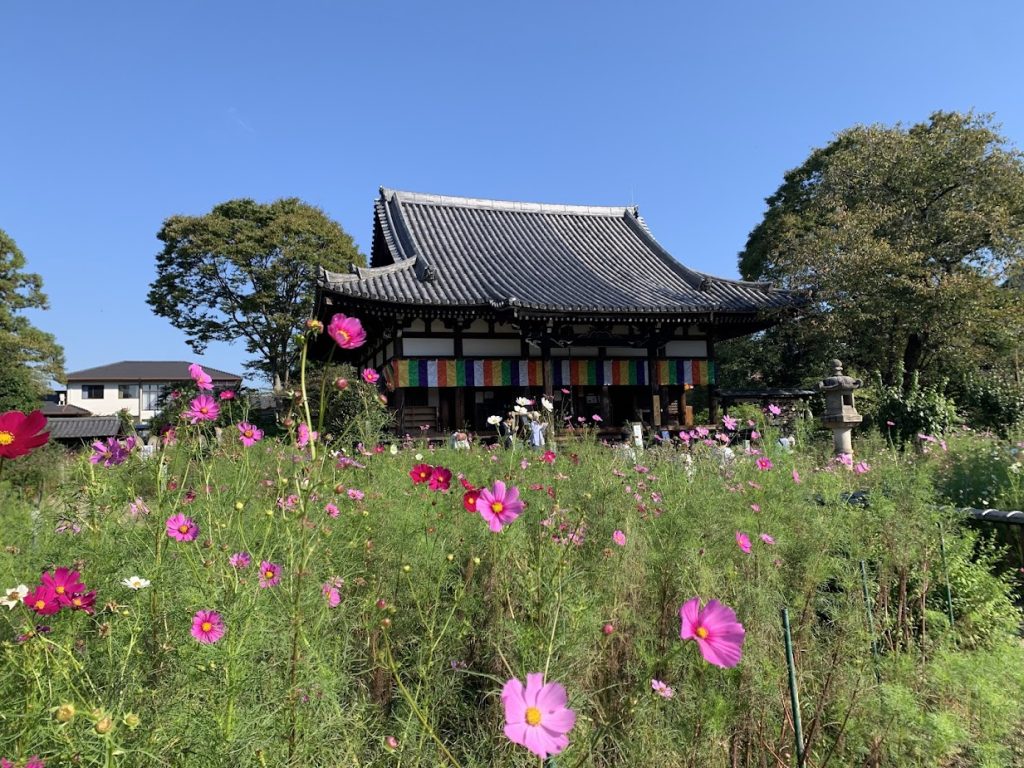 The temple, famous for its cosmos flowers, is located in Narazaka on the road leading to Kyoto.