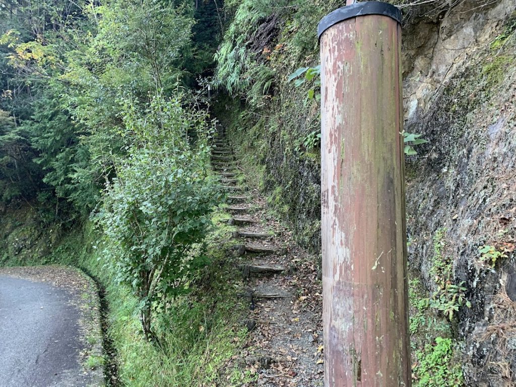 橋を渡ってしばらく行くと、小辺路の細い道が現れます。