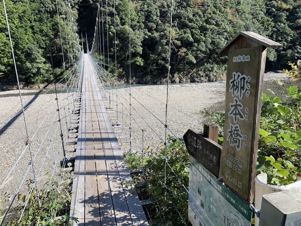 十津川村の入口にある「谷瀬のつり橋」ほど高くありませんので、それほど怖くありません。