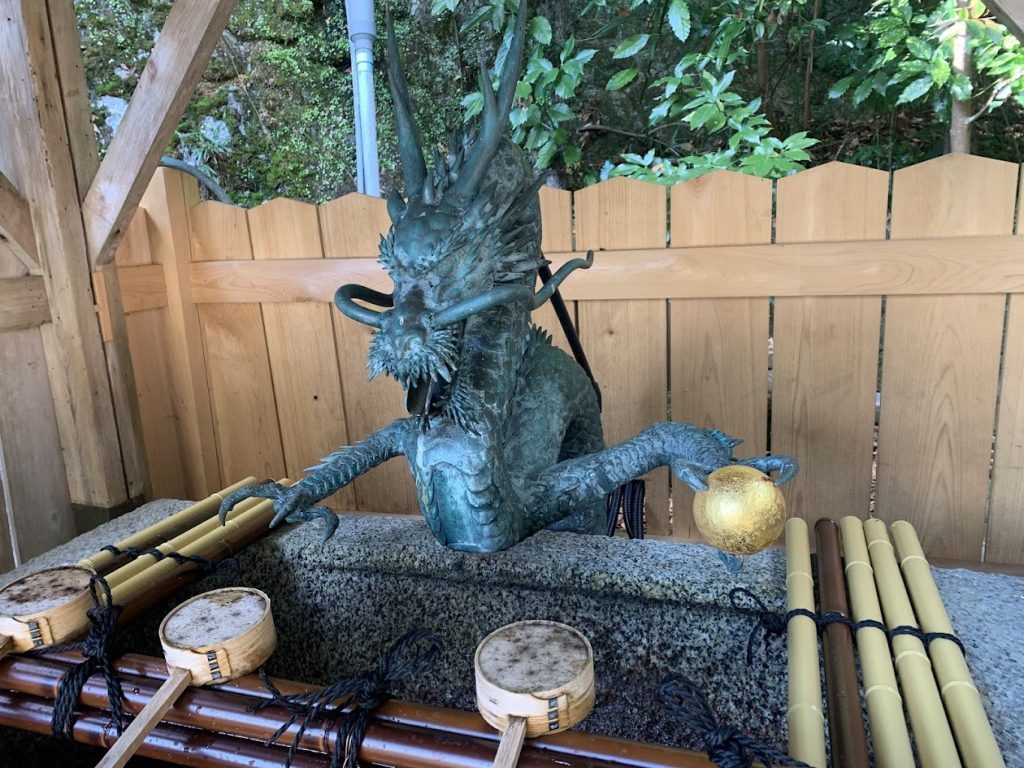龍が金の玉を持っています。