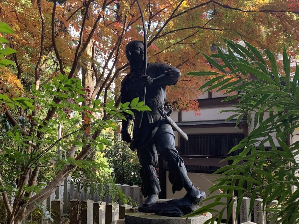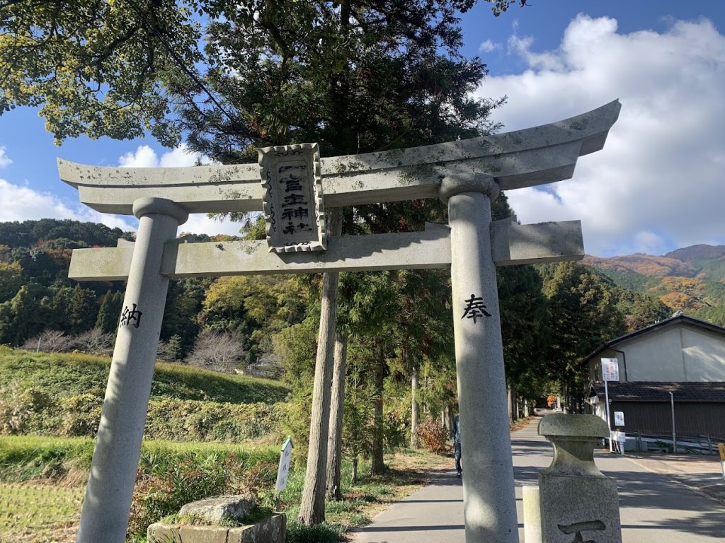 一言主神社の雄略天皇像と鳥居の写真 Photo of the statue of Emperor Yūryaku and the torii gate at Hitokotonushi Shrine 神社