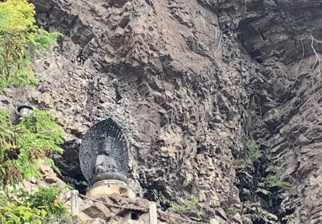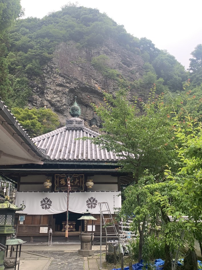 伽藍の後ろには、般若窟と呼ばれる大岩壁があります。
