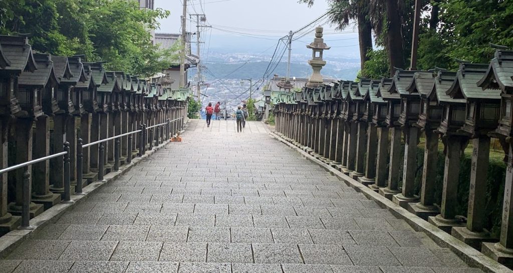 または、近鉄生駒駅から約1.5kmの参道を30分あまりで歩いて行くこともできます。ただ、かなりきつい登りになります。