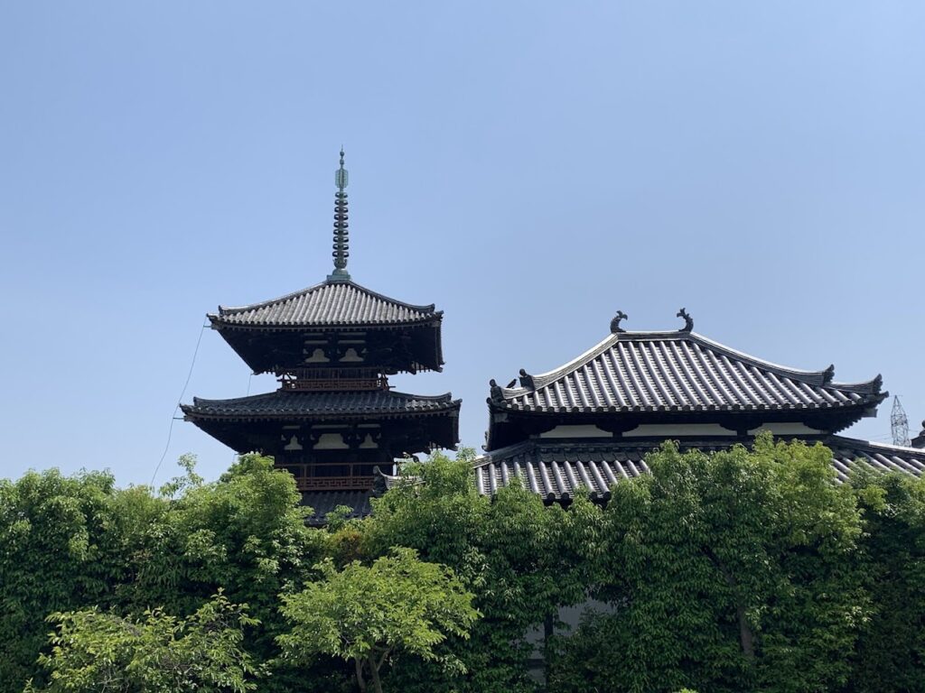 法隆寺から徒歩約25分です。法隆寺から斑鳩の里をハイキングして法起寺に行くのもおすすめです。