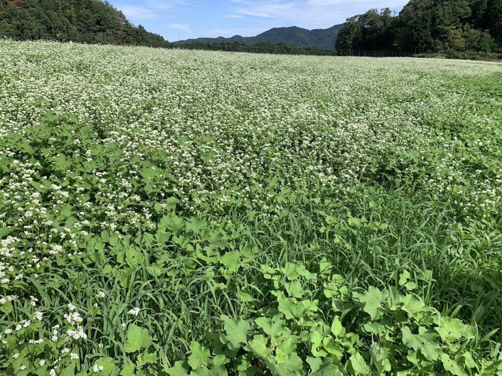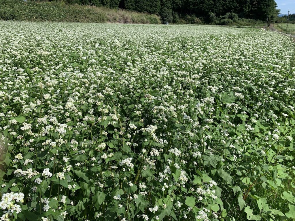 山里に広がる笠地区は、奈良でも有名なソバの名産地。9月中旬~10月上旬には、白いソバの花が一面に咲き、緑の山並みとのコントラストが美しい景観を作ります。