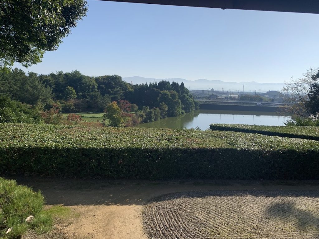 庭園から大和平野を望む。