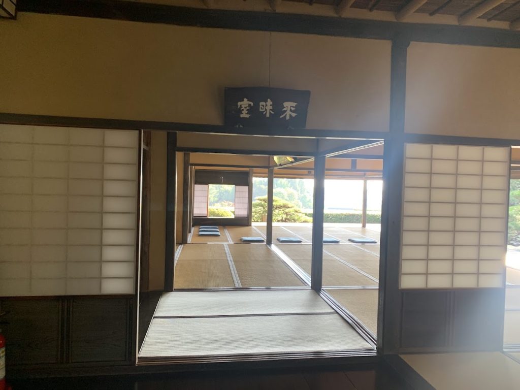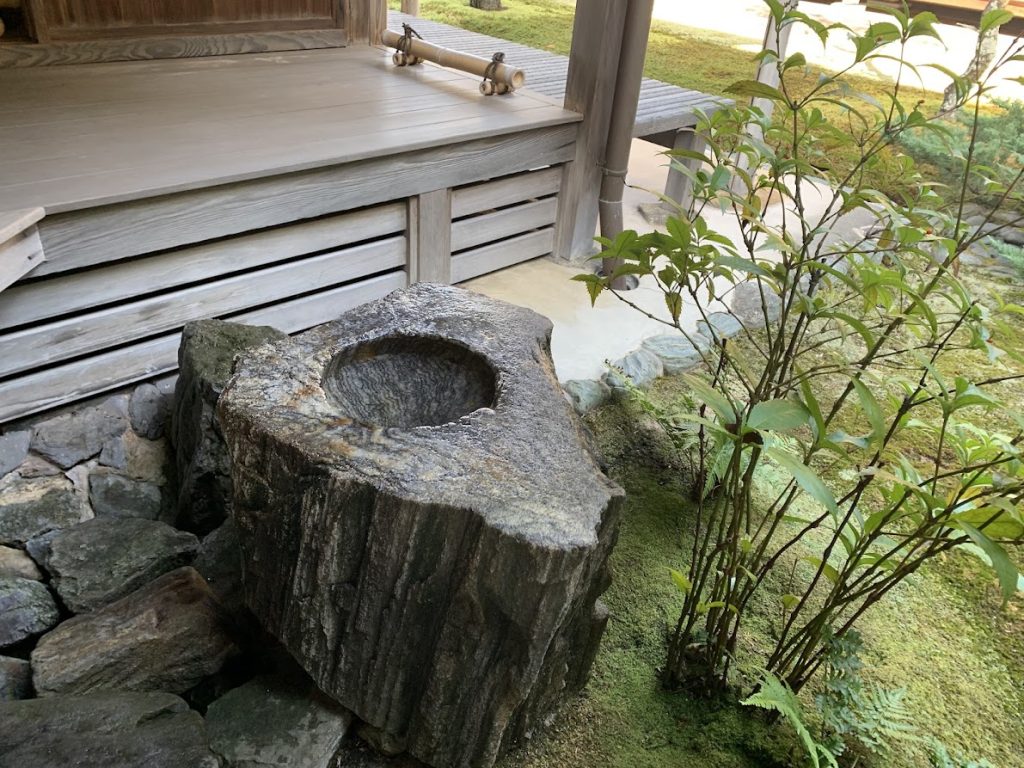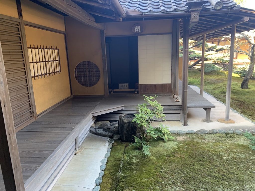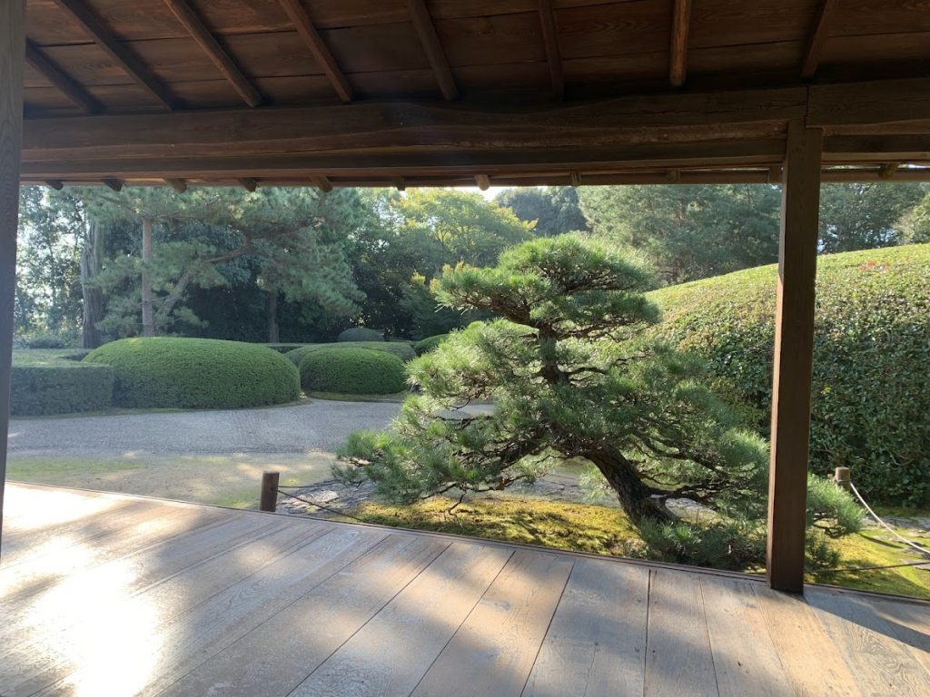拝観者は、ここに座って、お茶をいただきながら、庭を眺めることができます。