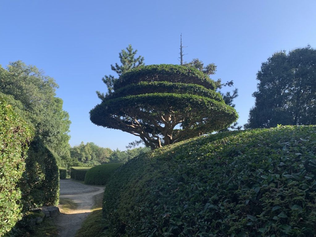 大和平野に借景した庭園は、刈込を主体として、ほとんど石を用いず、全国屈指の名園とされています。