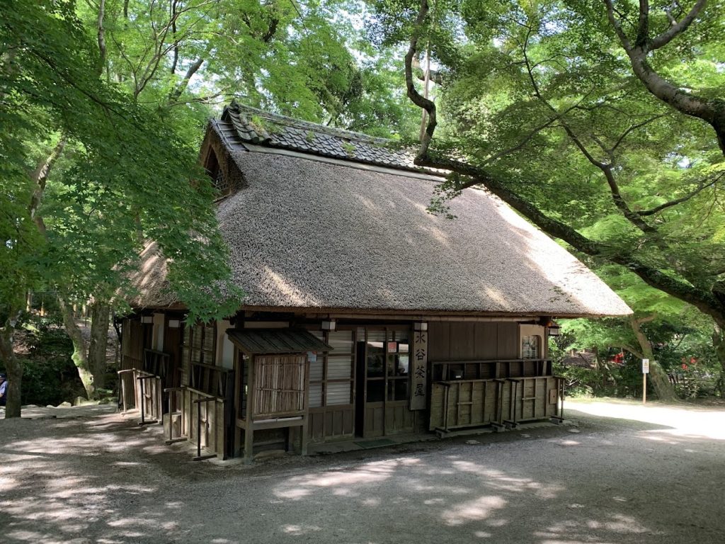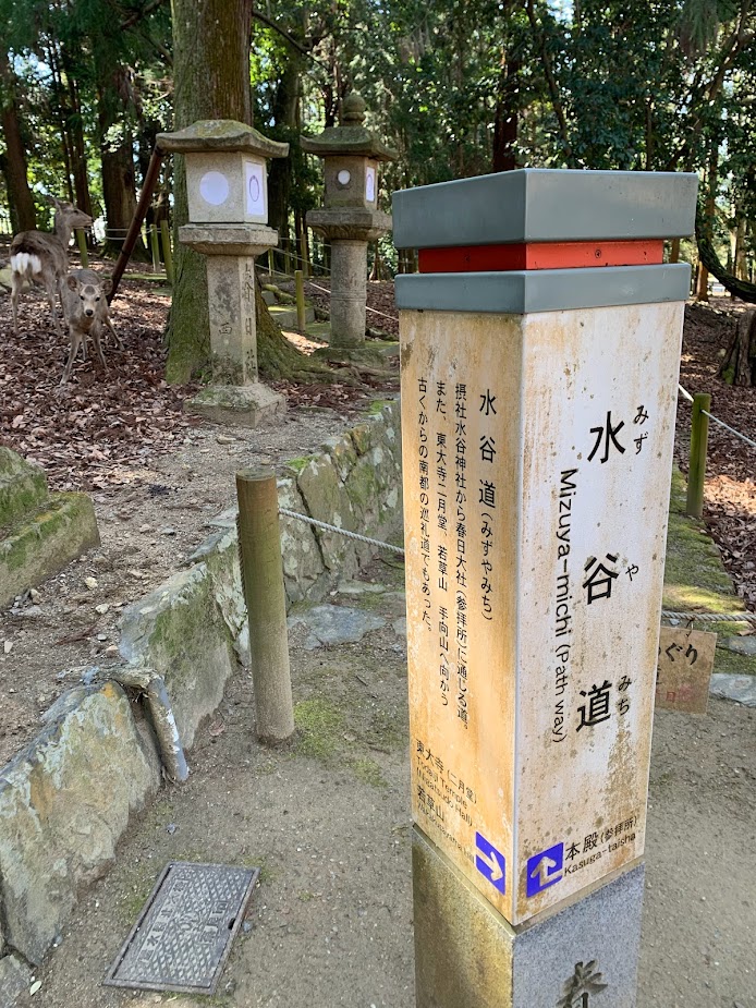 Behind the tea house flows the Mizuya River, which originates from the primeval forest of Mount Kasuga. Beyond this point, you will enter the grounds of Kasuga Taisha Shrine.