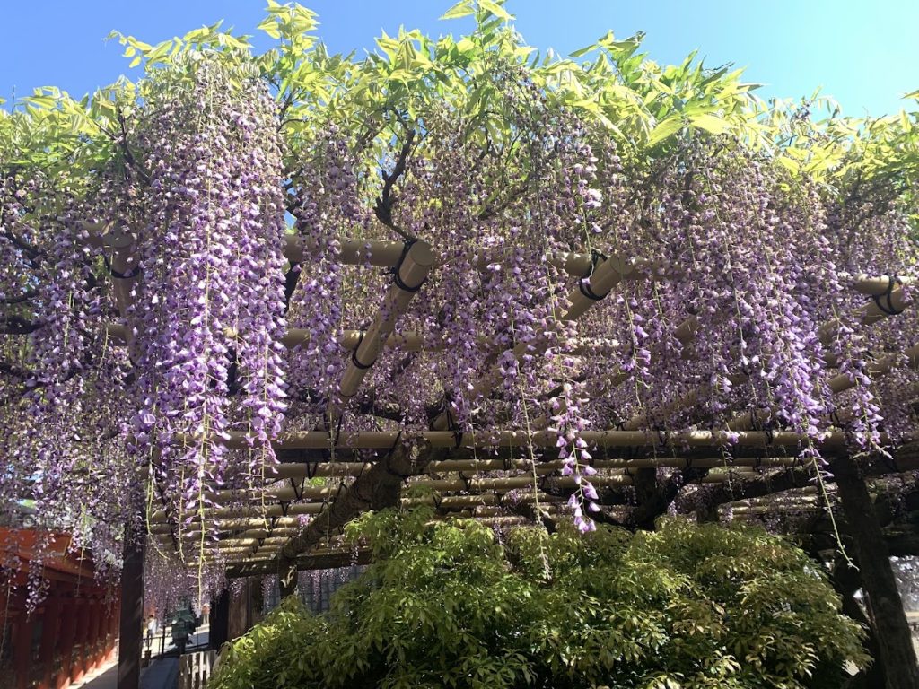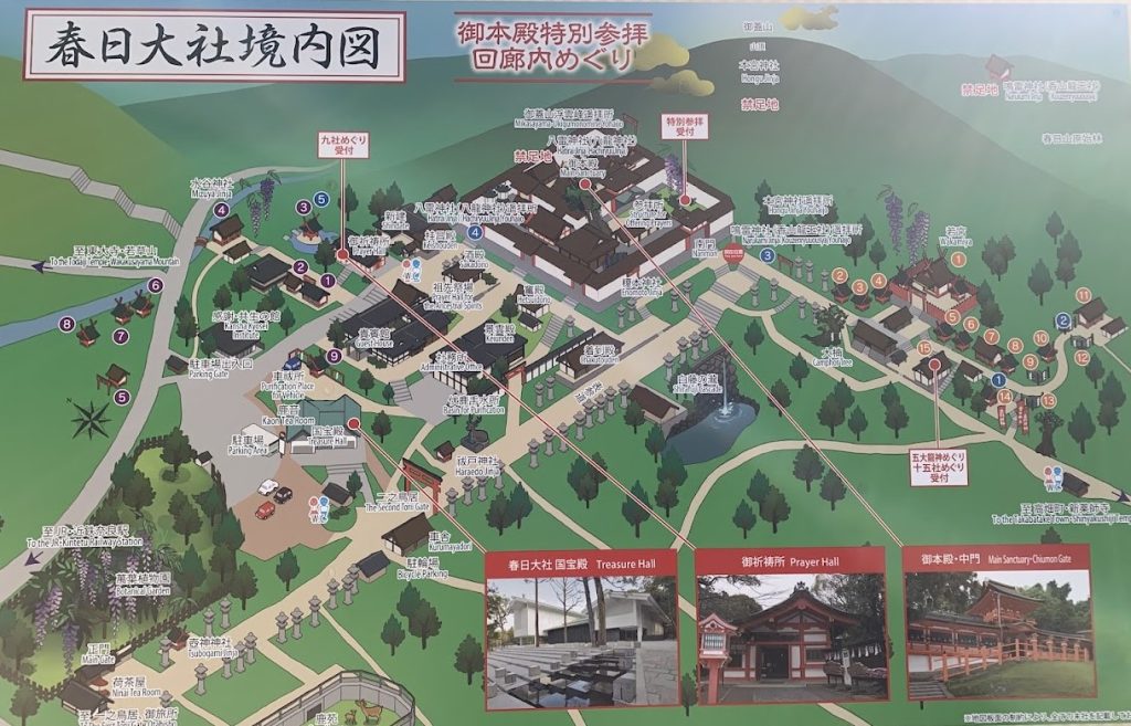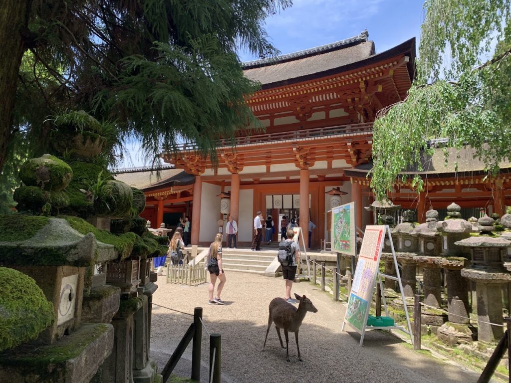 When thinking of Kasuga Taisha Shrine, deer, stone lanterns, and wisteria blossoms come to mind.