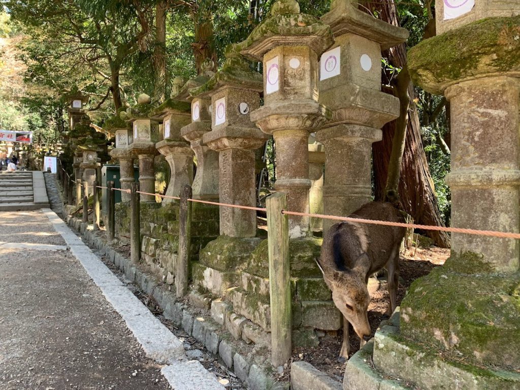 Along the approach to Kasuga Taisha Shrine, there are many stone lanterns—2,000 to be exact—along with an additional 1,000 hanging lanterns.