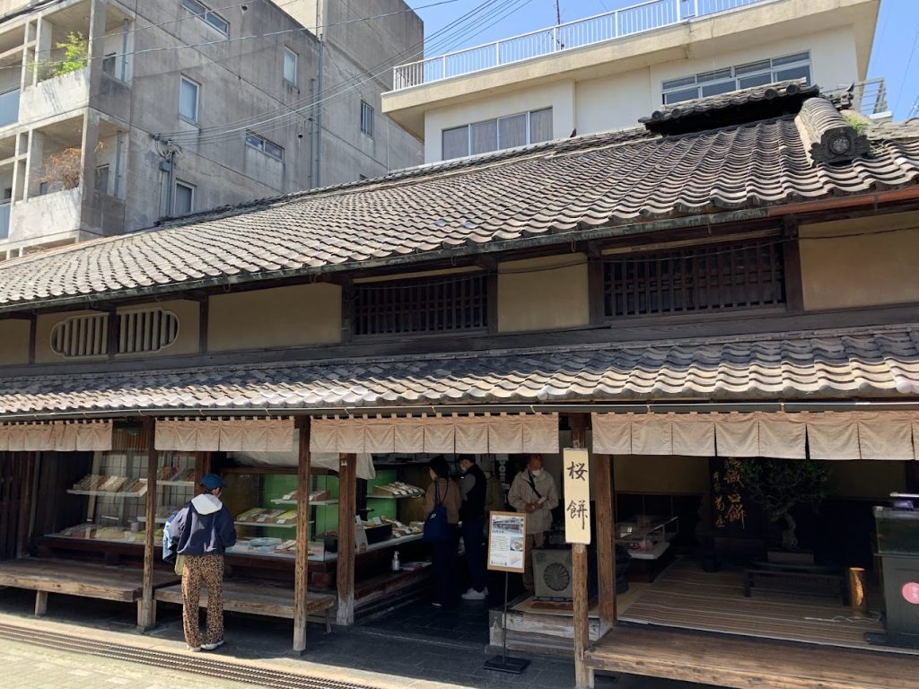 豊臣秀長公が、兄の太閤殿下・秀吉公を招いてお茶会をした折、初代が献上した「粒あんを餅で包み、きな粉をまぶした餅菓子」を、太閤殿下がとてもお気に召され、「鶯餅」という名を賜ったとのことです。
