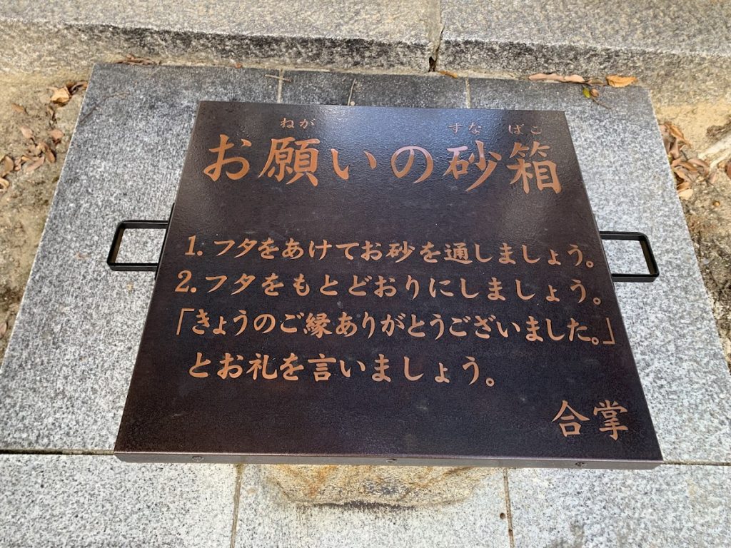 お参りのお礼と自分の名前と願い事を言いながら、砂を3回通します。
