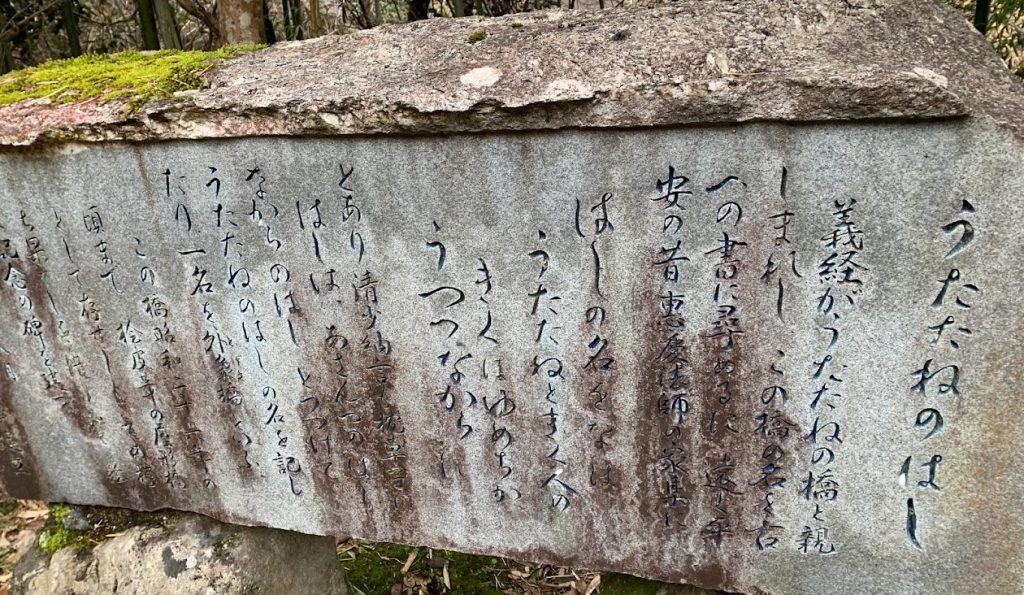 義経が、兄・頼朝の兵に追われ、吉野山から逃げる途中に疲れてうたたねをしたと言われる橋の跡です。