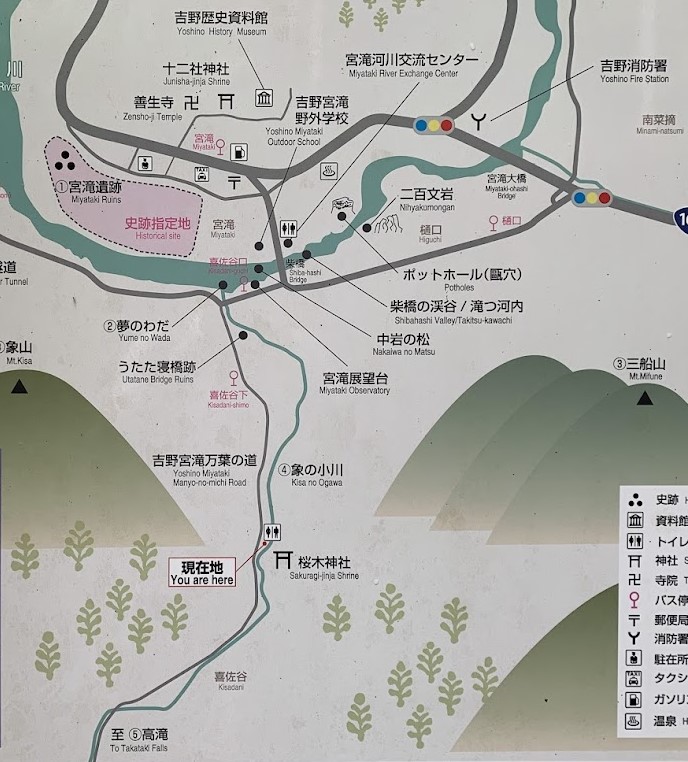 宮滝は、吉野山の入口から、吉野川上流・数キロのところにあります。