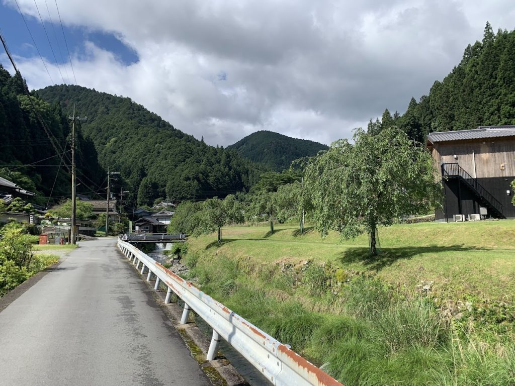 象の小川(きさ)に沿って歩いていくと、吉野の山が見えてきます。