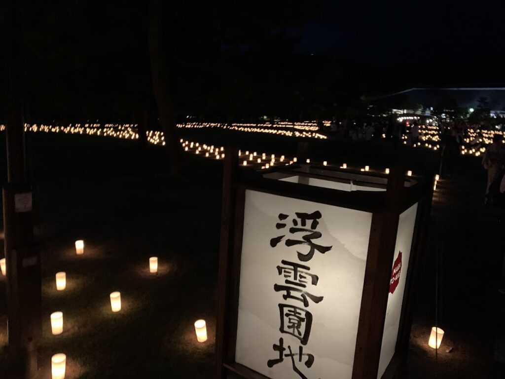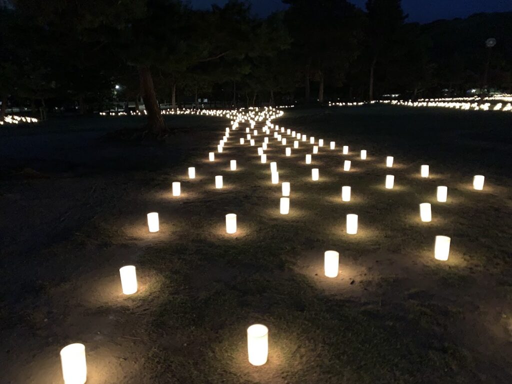 浮雲園地会場 燈花会最大規模の灯り数。広大な芝生に灯りが敷き詰められ、地上に降りた天の川のような絶景が広がる。