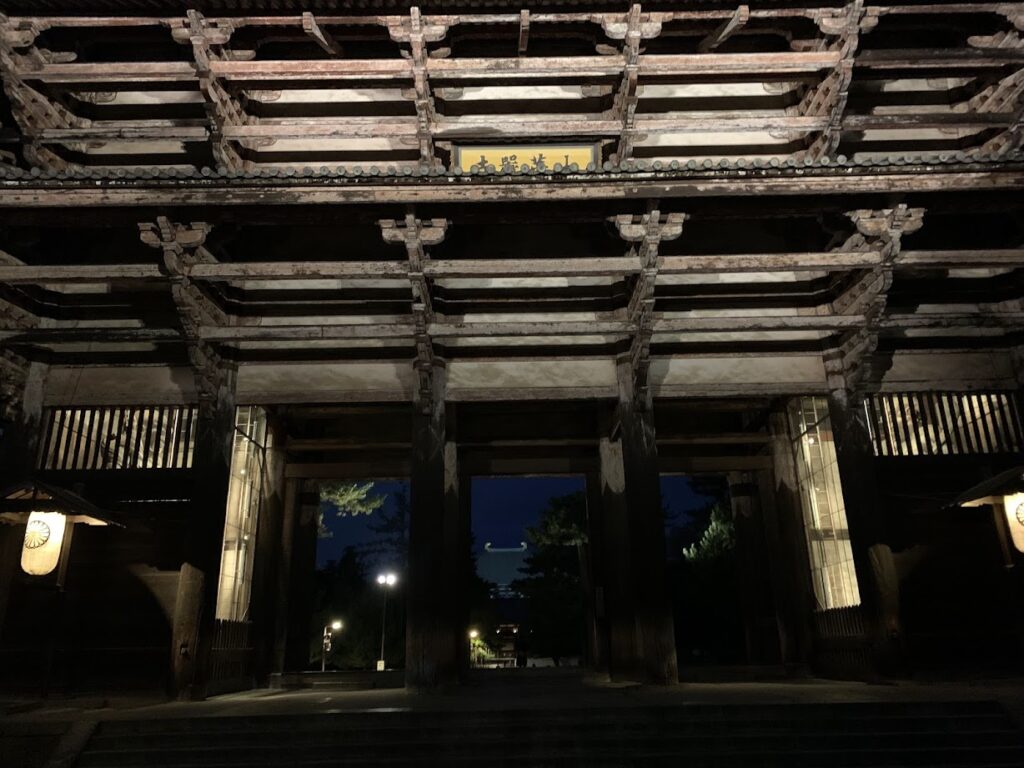 • 再建された中金堂や国宝館へ続く参道がほのかに照らされ、静寂の中で仏様と向き合える。