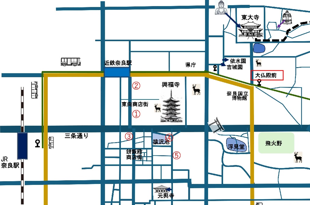 | ⑤ | 奈良うどん ふく徳 | 4.3 | 245 | 猿沢池東側・五十二段階段下を南へ・ならまち入口付近 |