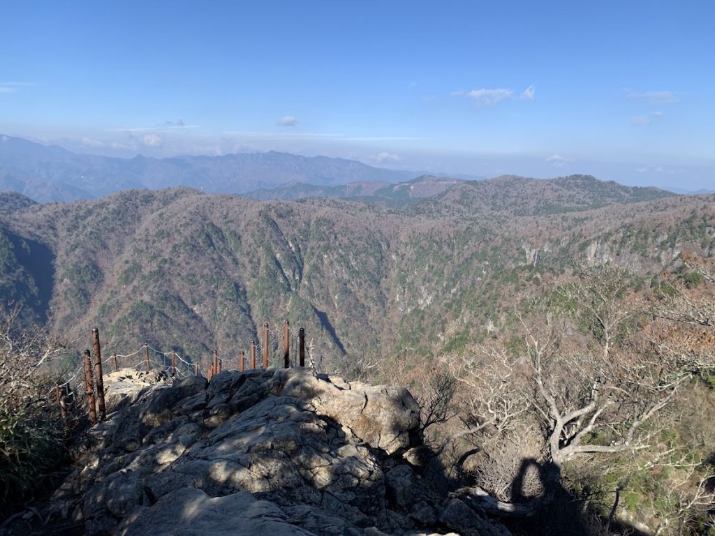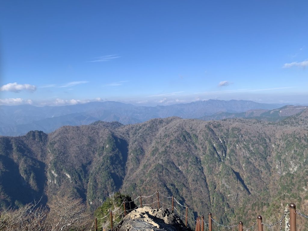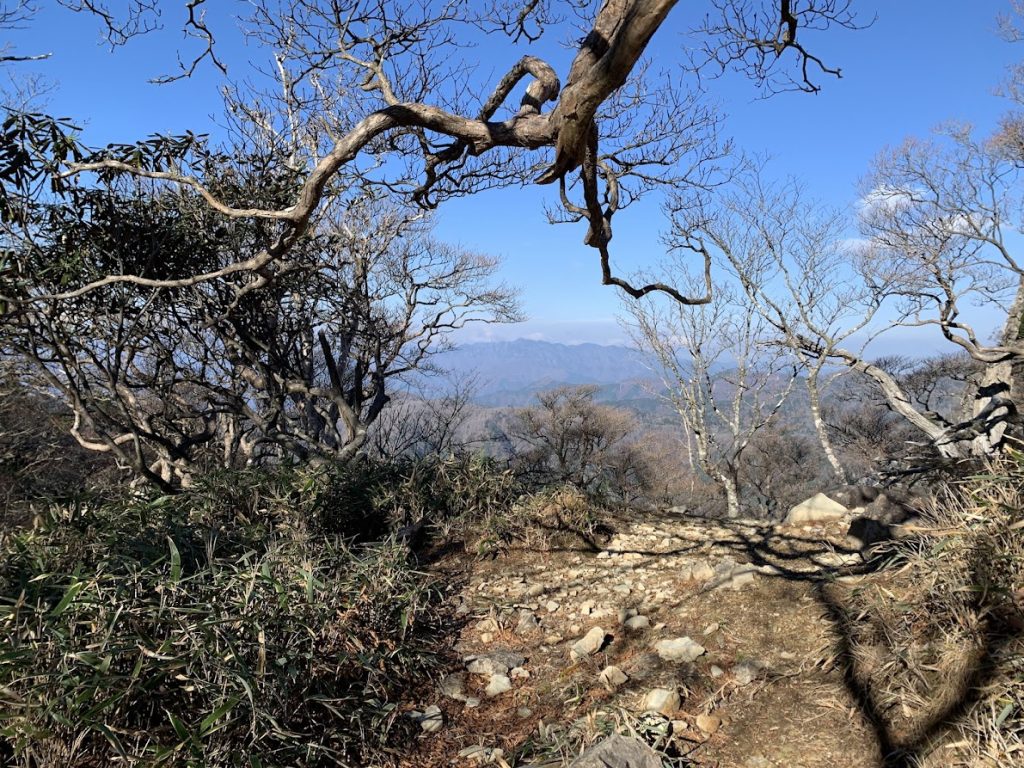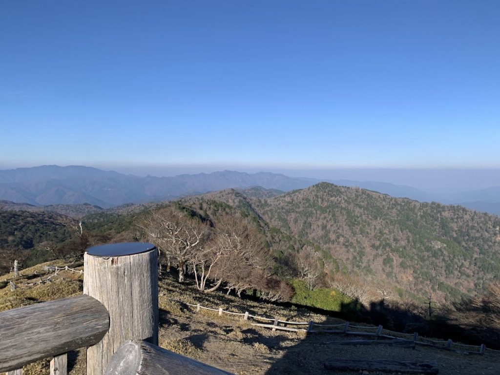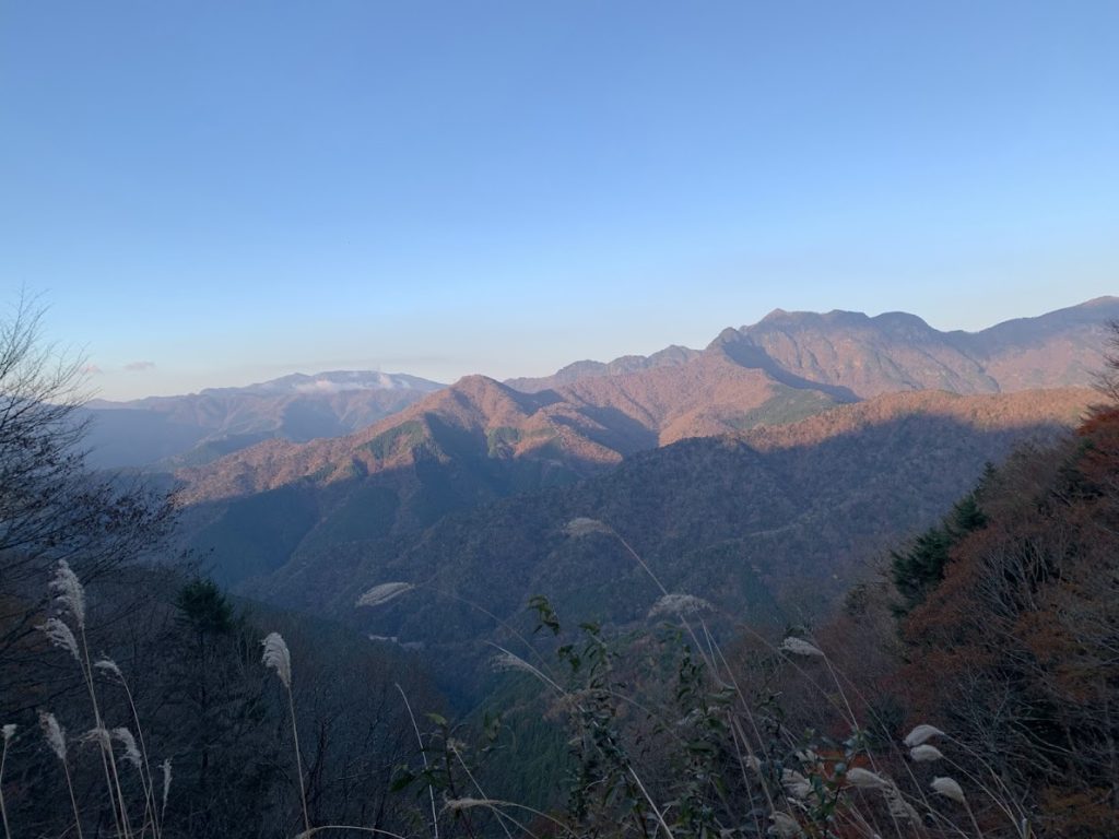 The ridgelines of the distant mountains are part of the Kumano Kodo and Omine Okugake pilgrimage routes.