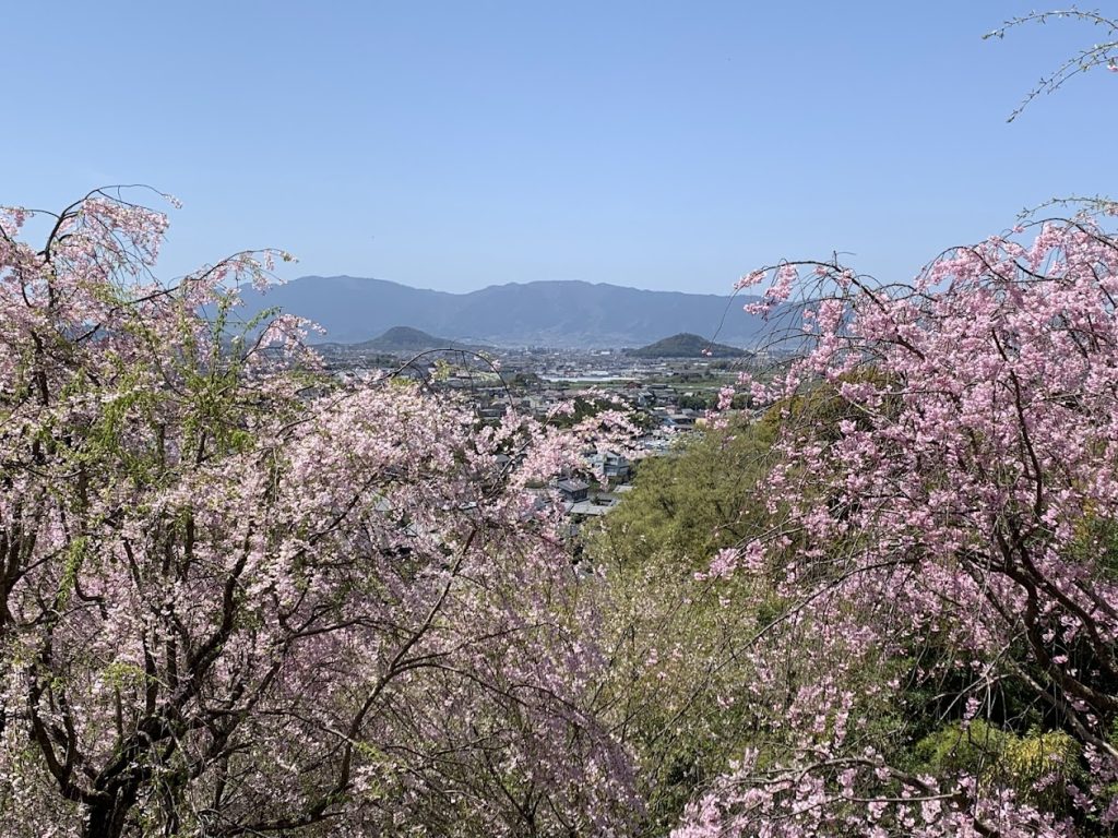 From here, you can enjoy a stunning view of the Nara Basin. In particular, the Three Mountains of Yamato (the historical name of Nara Prefecture) are beautifully visible.