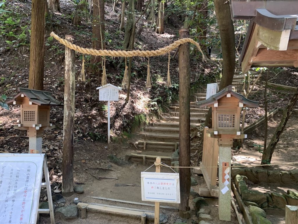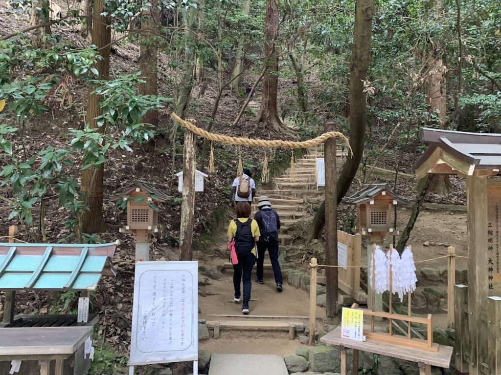 For a long time, Mount Miwa was a sacred area where entry was forbidden. However, in recent years, Pilgrims can now climb the mountain for worship after completing the necessary procedures at the affiliated Sai Shrine. (The term used is “climb for worship” rather than simply “climb.”)