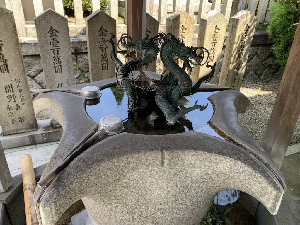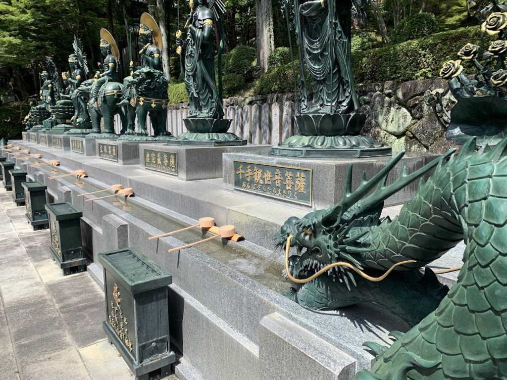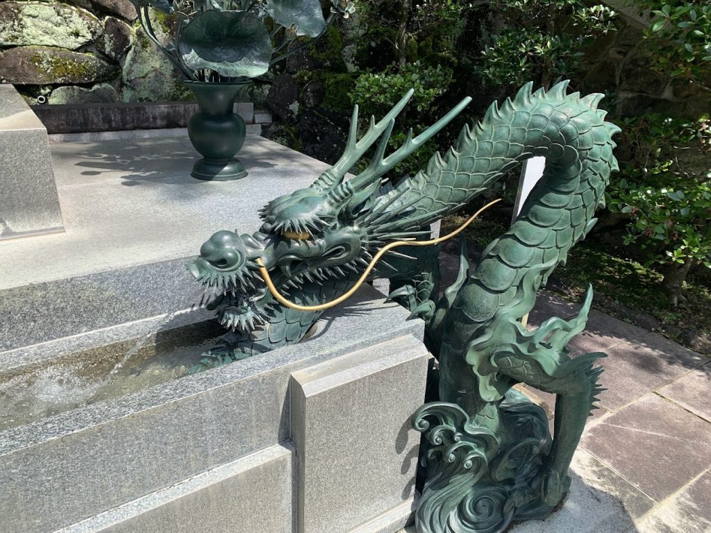 平安時代に弘法大師が寺に来られ、寺の背後にある登美山に力の強い龍神さまがおられると感じられ、奥の院に龍神様を祀られました。