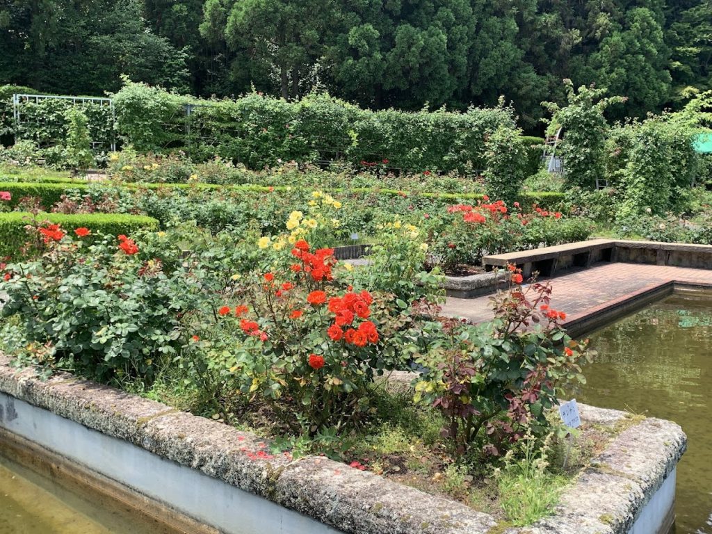 入口から入って、右手にバラ庭園