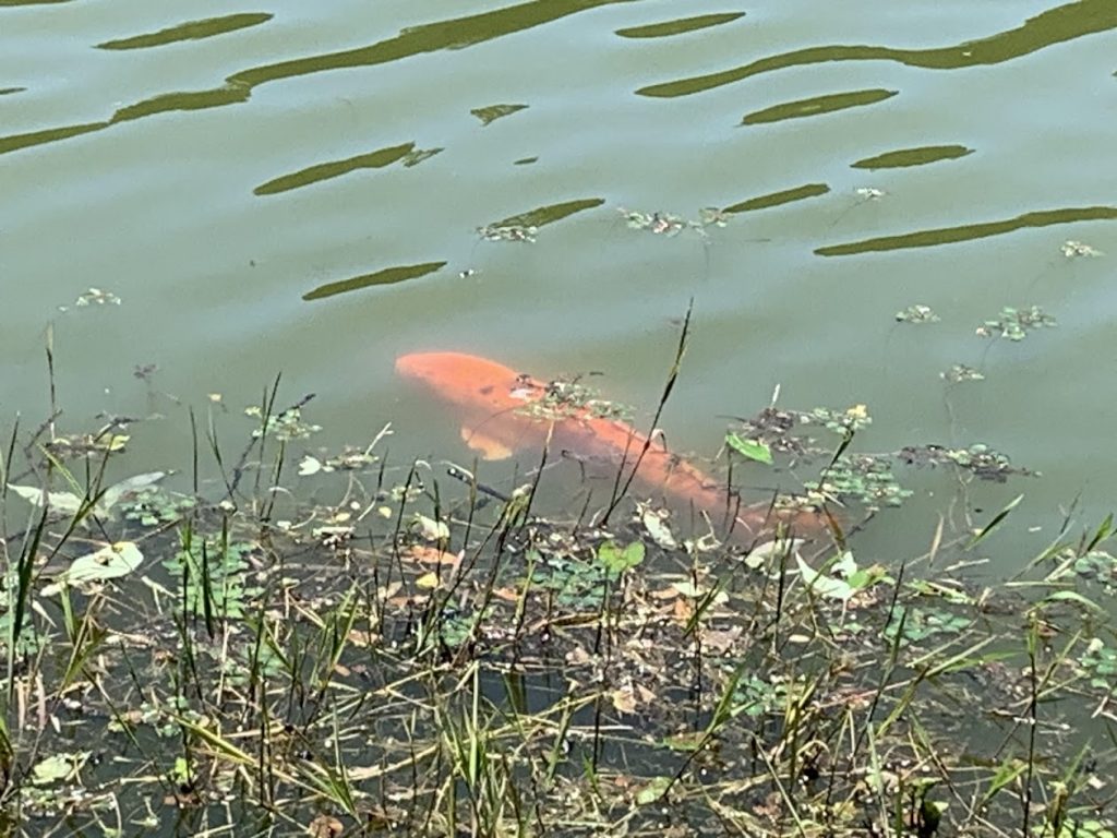 The pond is oval-shaped, surrounded by mountains on three sides, and measures between 100 and 150 meters.