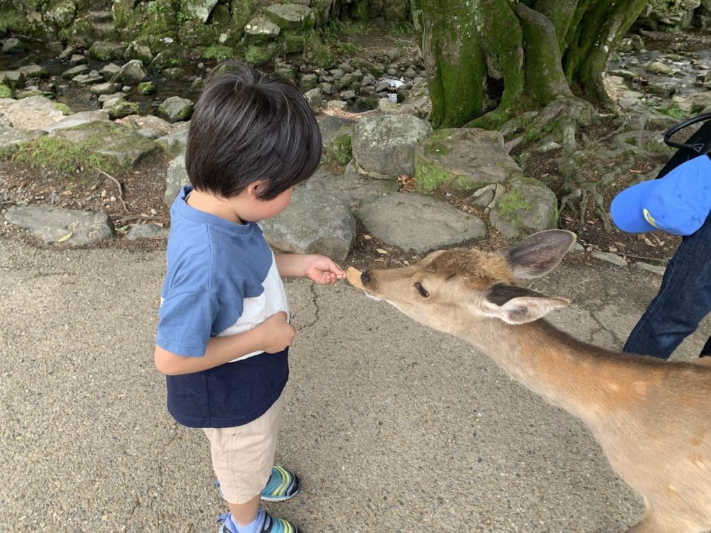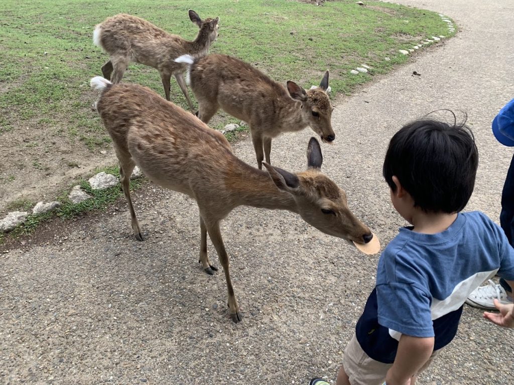 鹿せんべいを持っているのに気付いた鹿がやってきました。