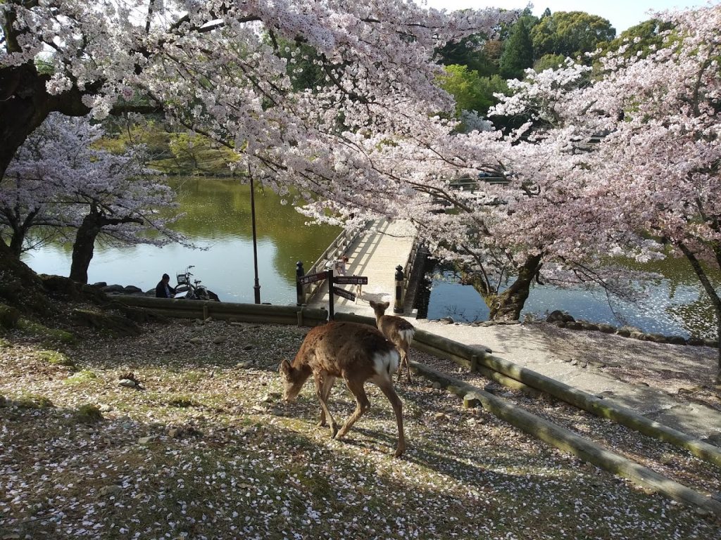 少し見にくいですが、木々の間から興福寺の五重塔が見えます。