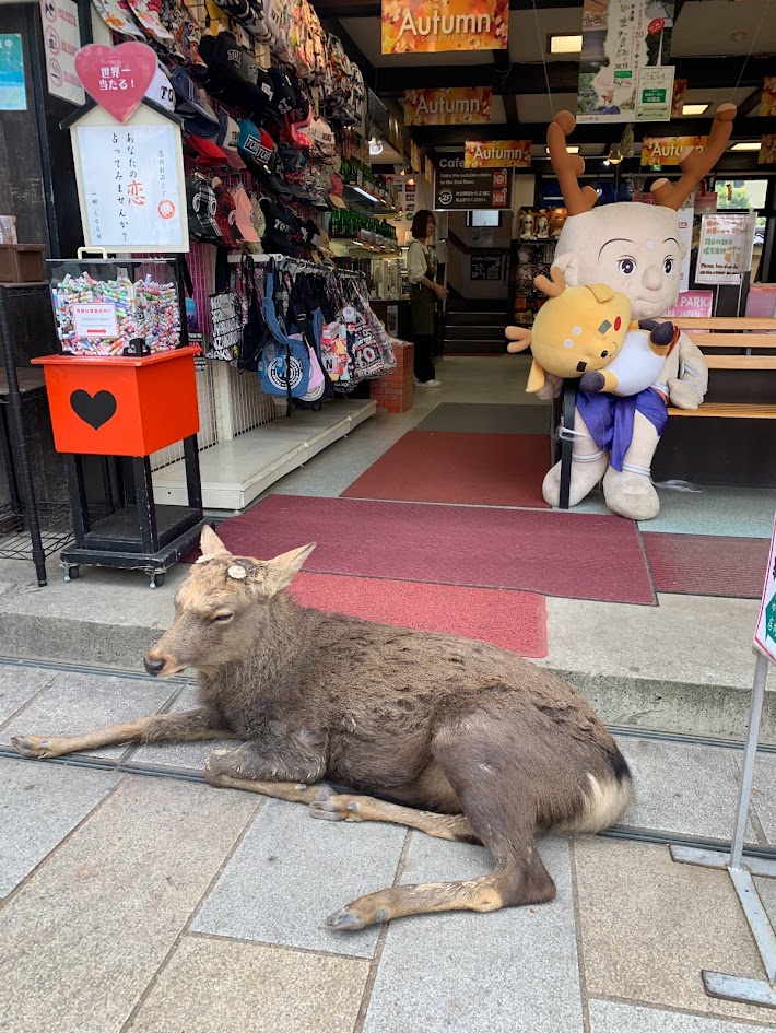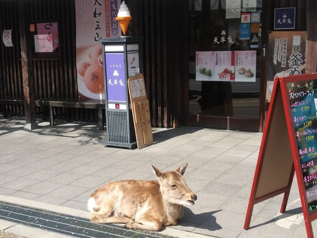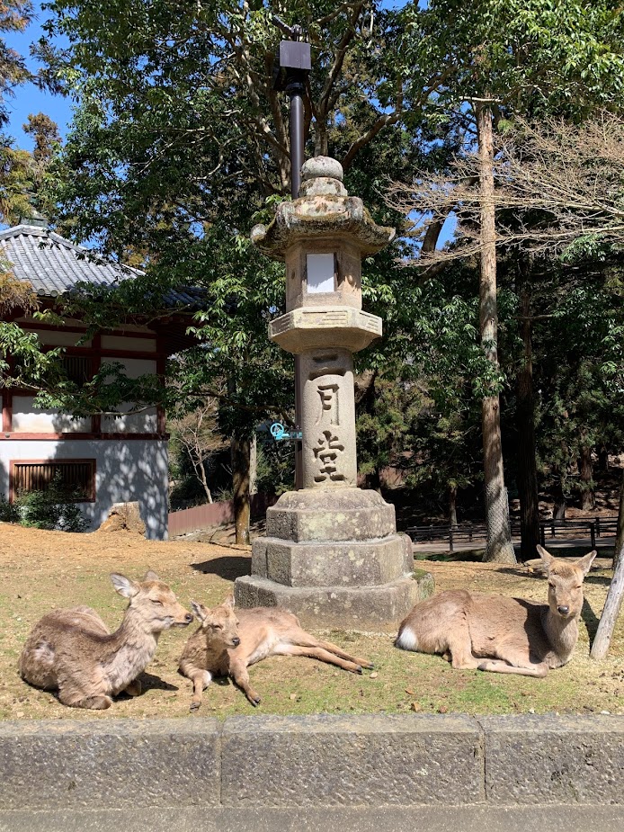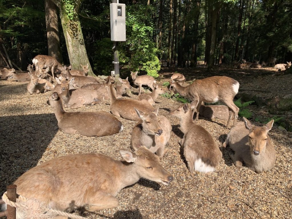 ここは観光客が、たくさん鹿せんべいをくれるので、すでにお腹がいっぱいになって、気持ちよく休んでいるようです。