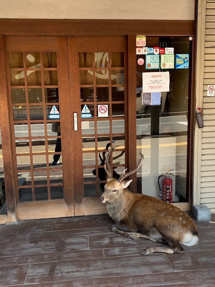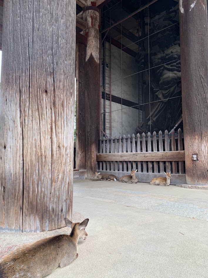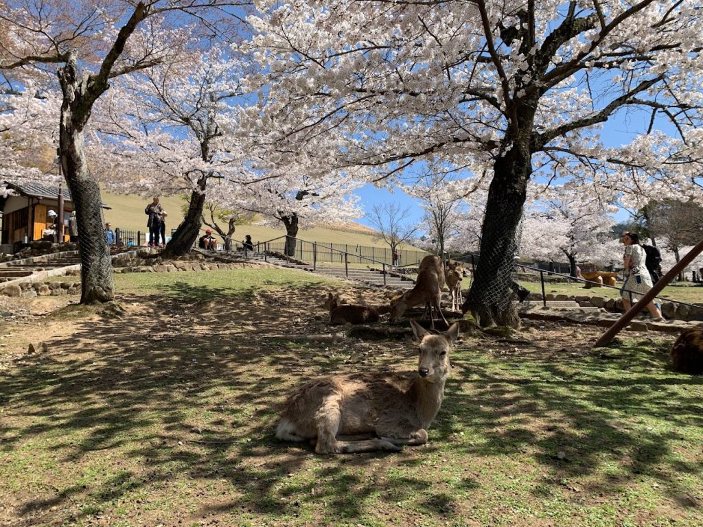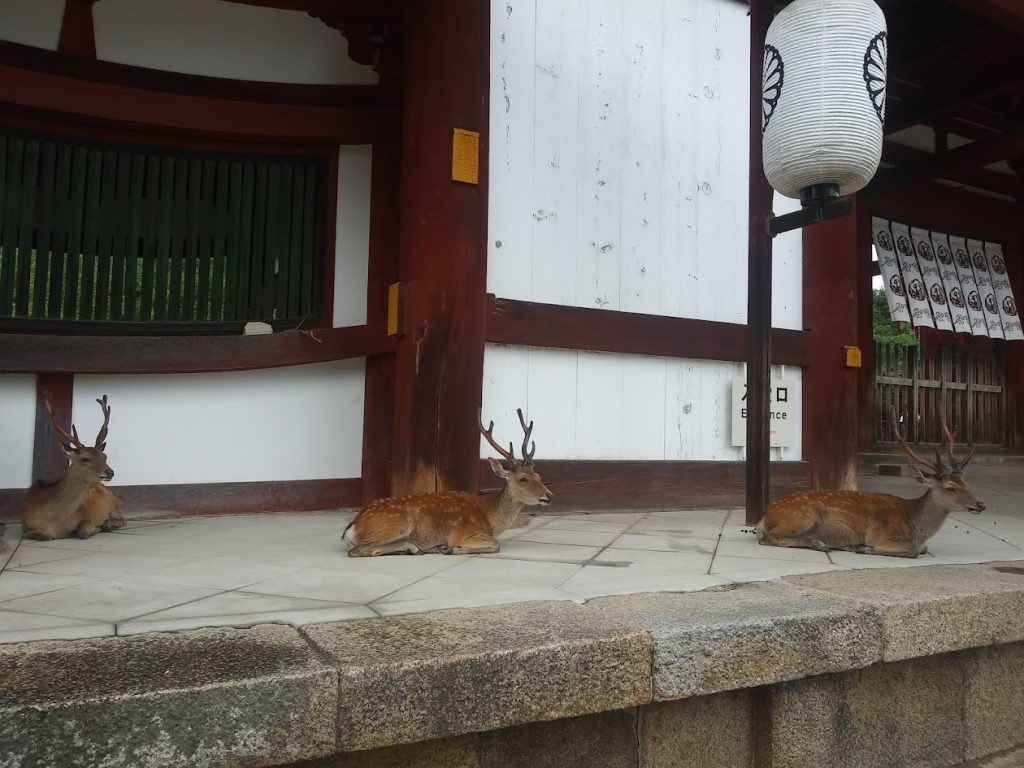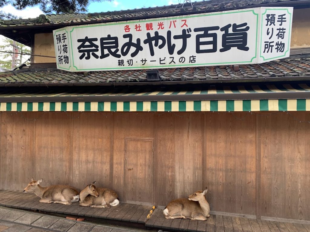 ここは観光客が、たくさん鹿せんべいをくれるので、すでにお腹がいっぱいになって、気持ちよく休んでいるようです。
