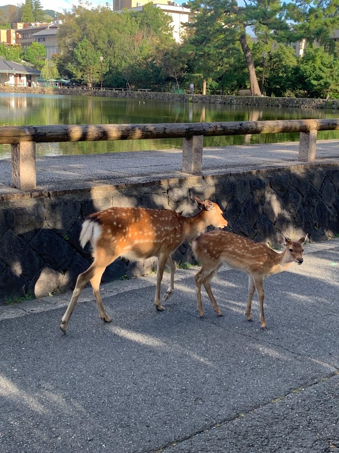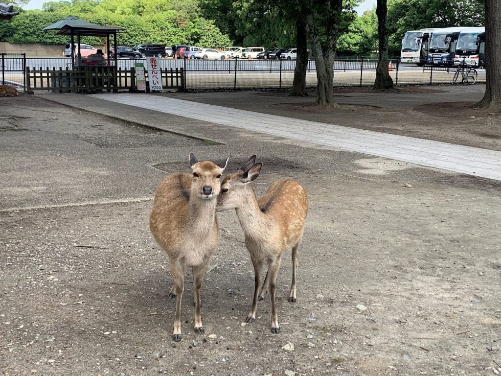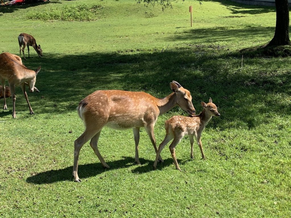例年は、母鹿は鹿園(ろくえん)で保護されながら出産し、7月20日ごろに奈良公園に母子ともども戻ります。