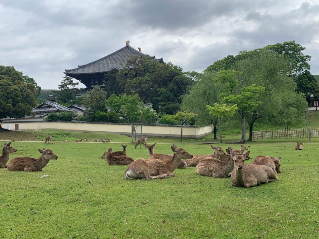 奈良公園には、約1465頭(奈良の鹿愛護会の2025年の頭数調査による)もの野生の鹿が生息しています。 奈良の人々は長い間、鹿を神さまの使いとして崇め、大切に保護してきました。かつては、鹿を傷つけたり殺したりすることが重罪とされたほどです。