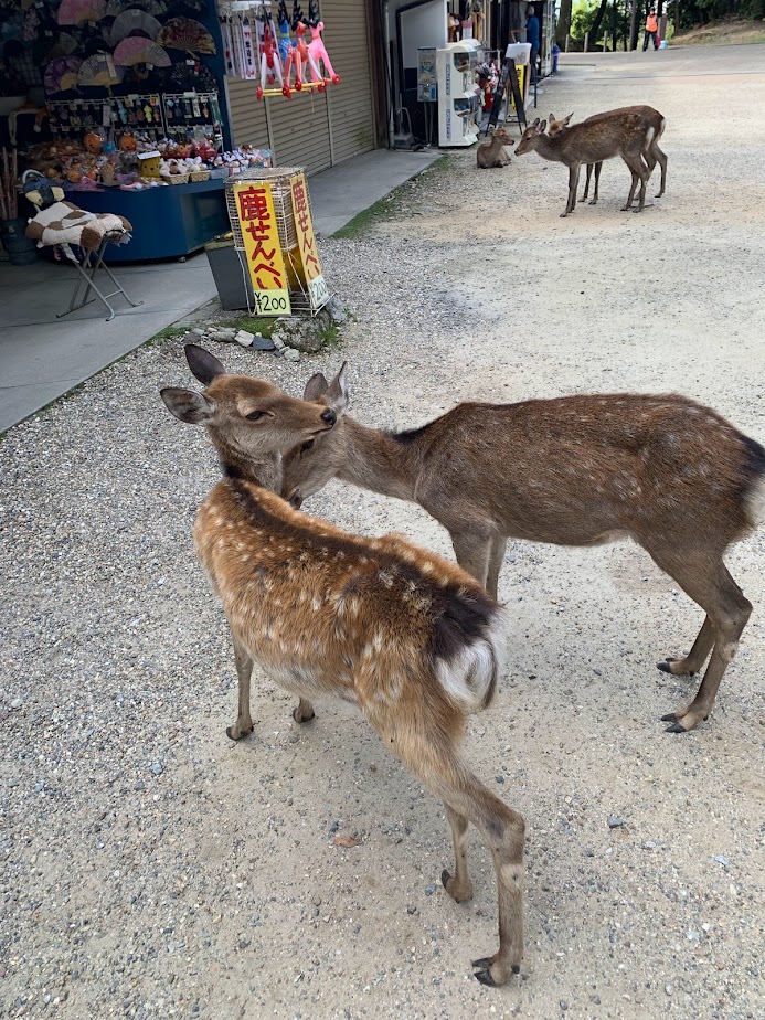 鹿せんべいを待つ2匹の鹿のようすが愛らしいです。