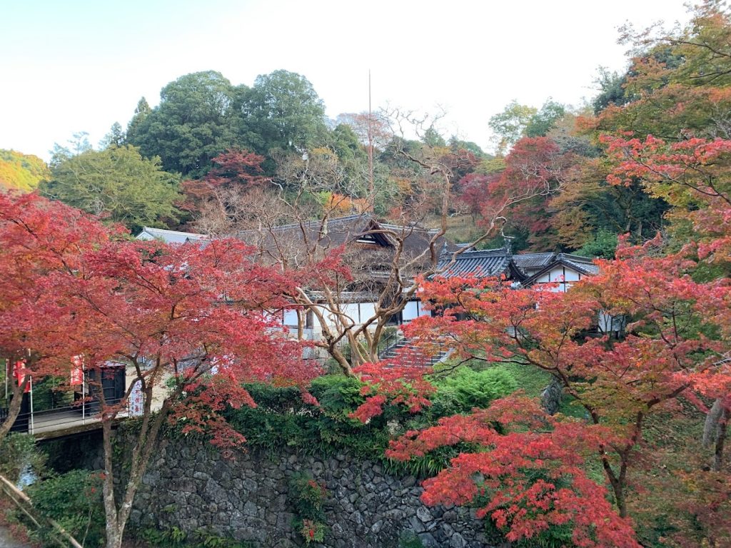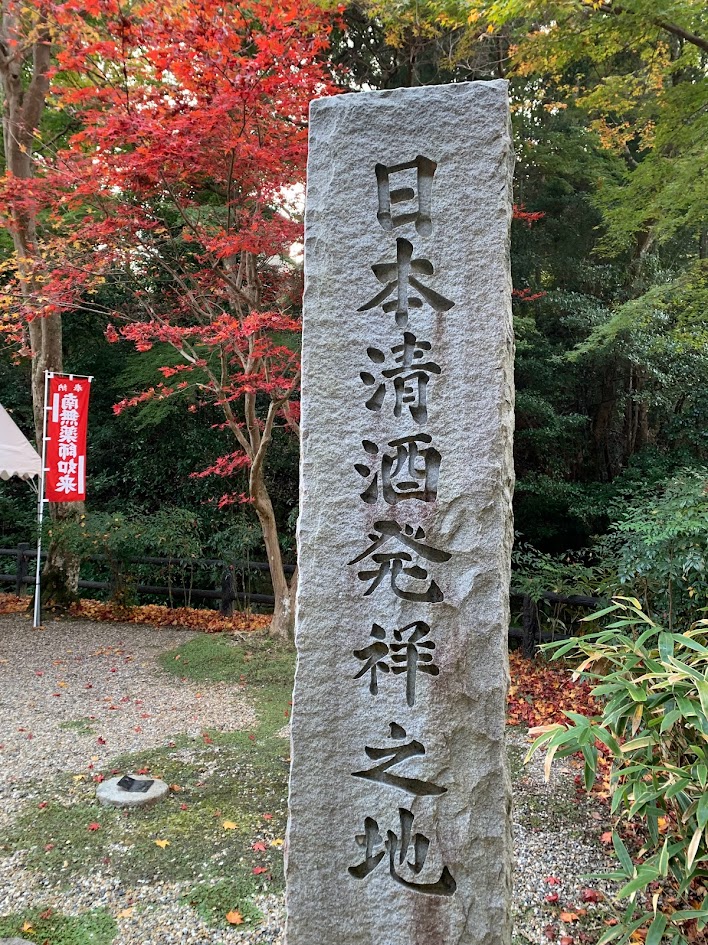 The temple is famous for its many maple trees and its historical connection to the birthplace of sake.