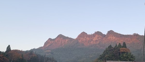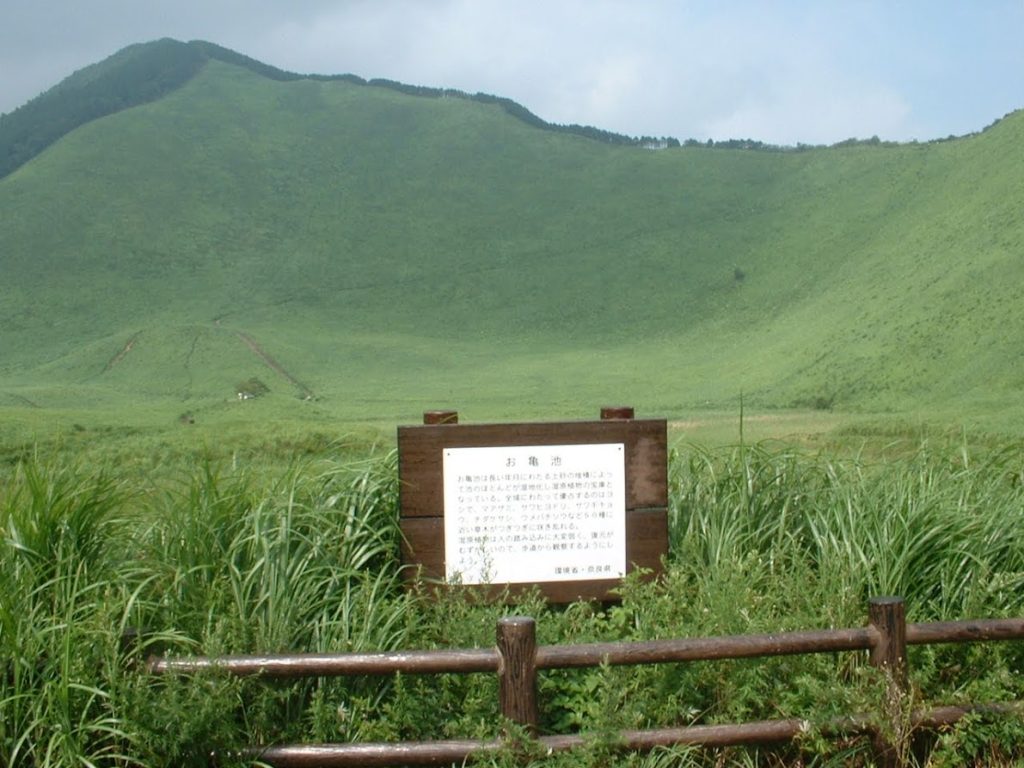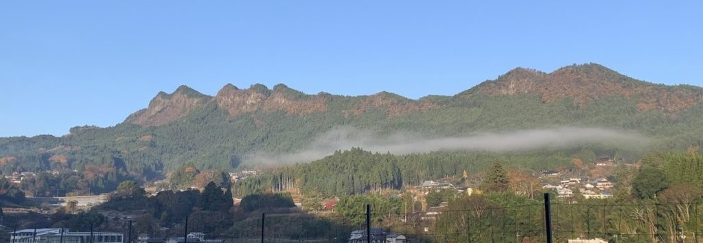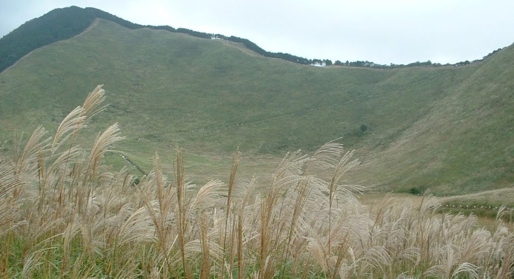 The distant high mountain is Mount Kuroso, standing at an elevation of 1,037 meters.