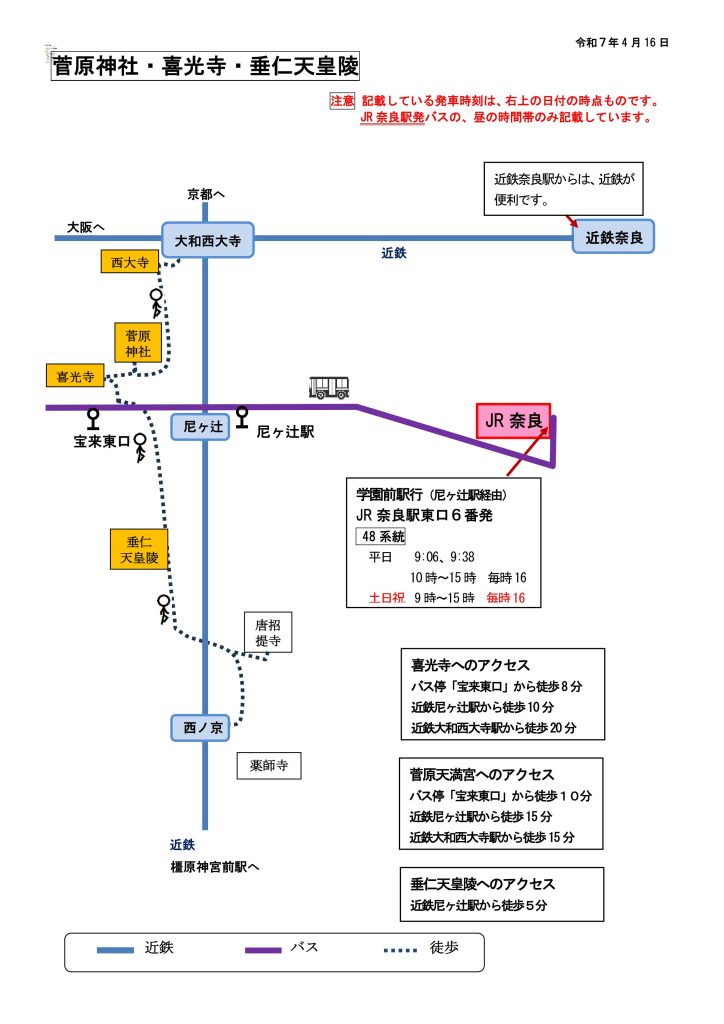 西ノ京ロータスロードへのJR・近鉄奈良駅からのアクセス|バス時刻と乗り場案内