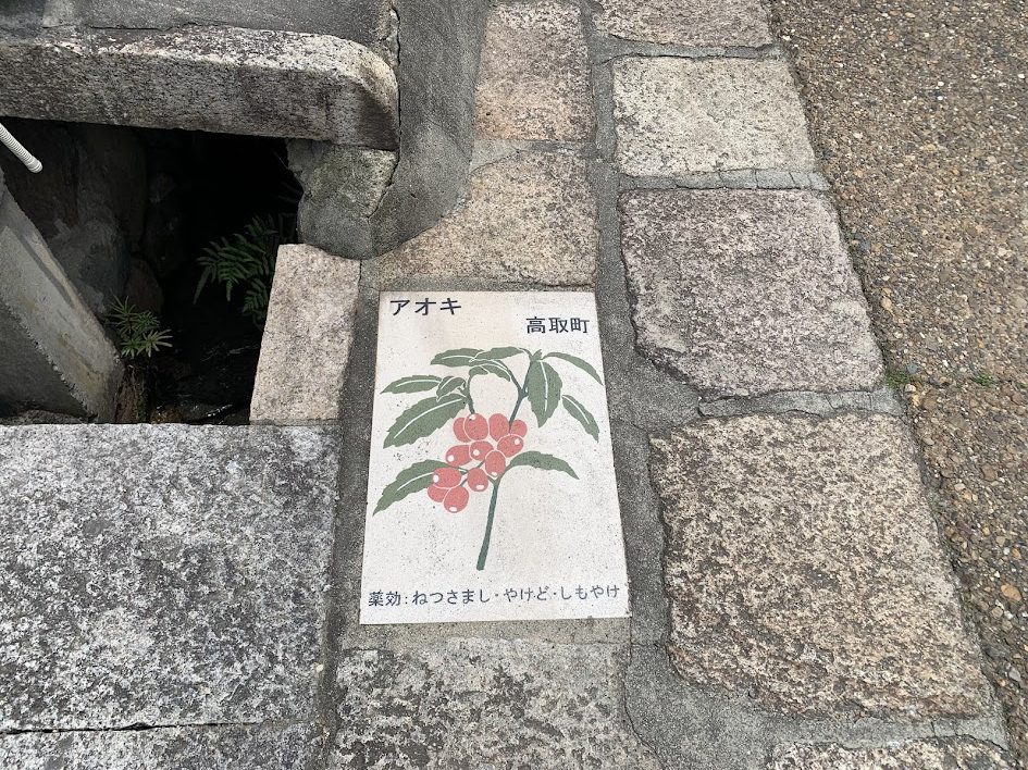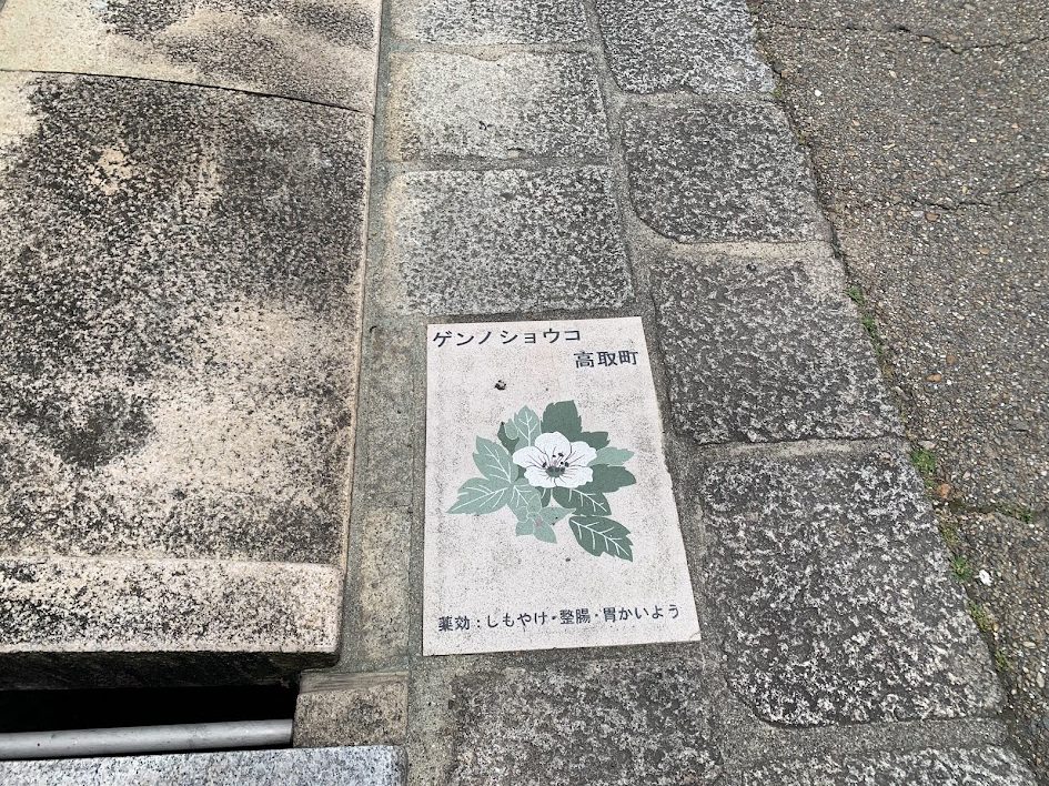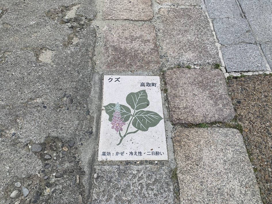 Tiles introducing medicinal herb found on the roadside of Tosa Road